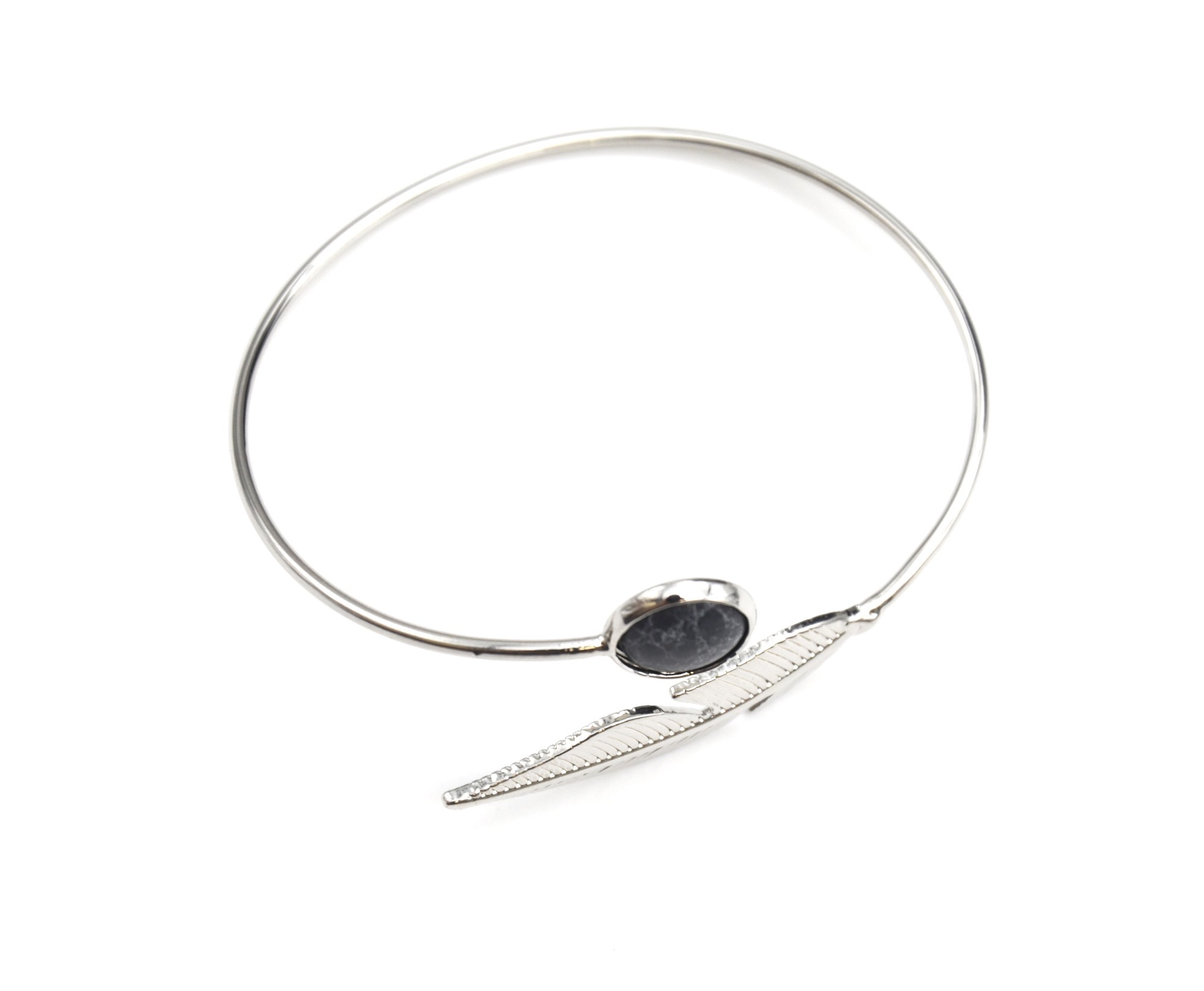 - Tour du Bracelet : 18cm, Hauteur Plume : 1cm, Longueur : 3.6cm, Diamètre Pierre : 1.1cm