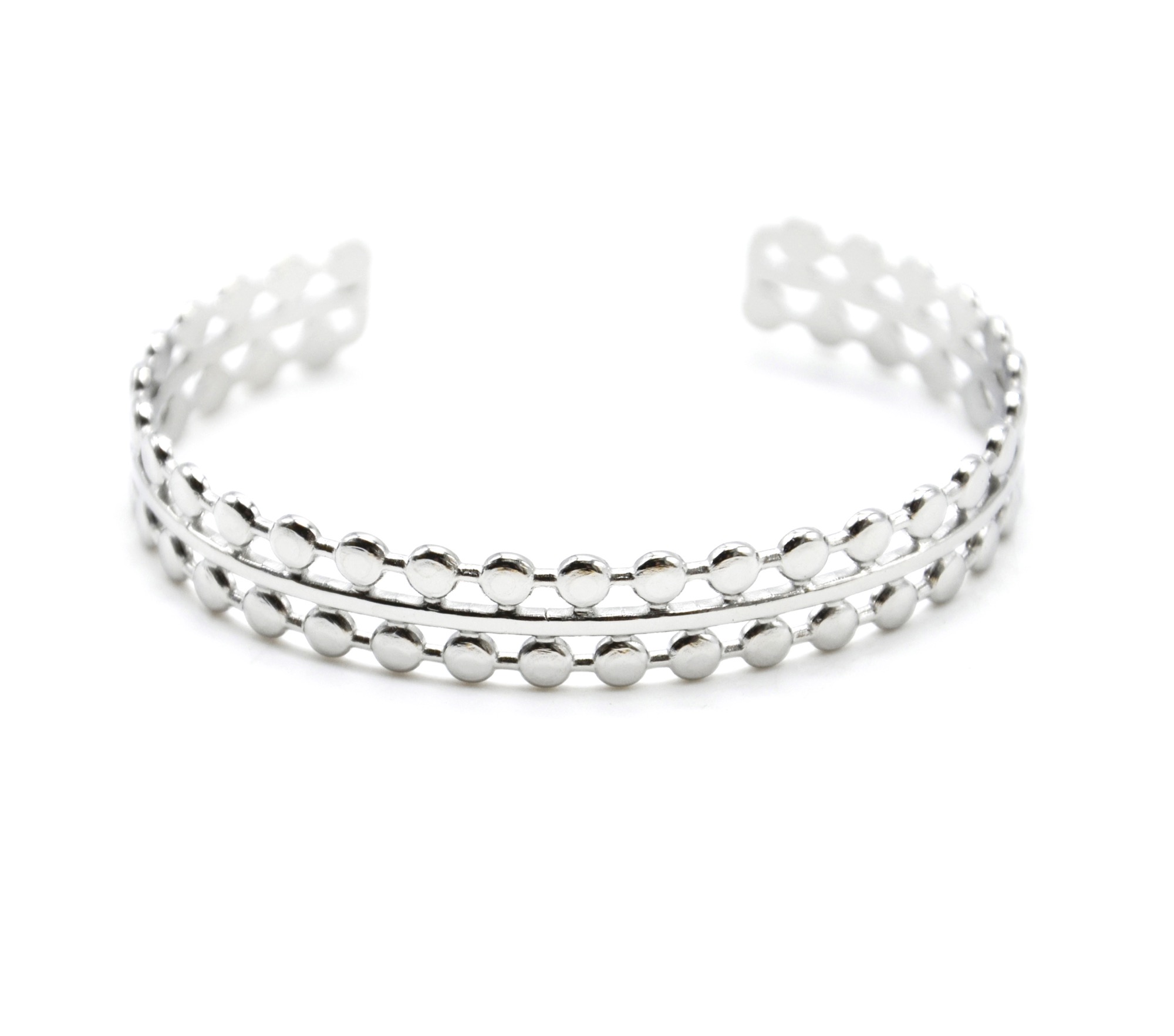 BC3975F – Bracelet Jonc Ajouré Barre et Multi Points Acier Argenté