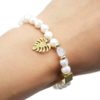 - Tour du Bracelet : 19cm (élastique), Largeur Perles : 0.8cm, Feuille : 1.5cm