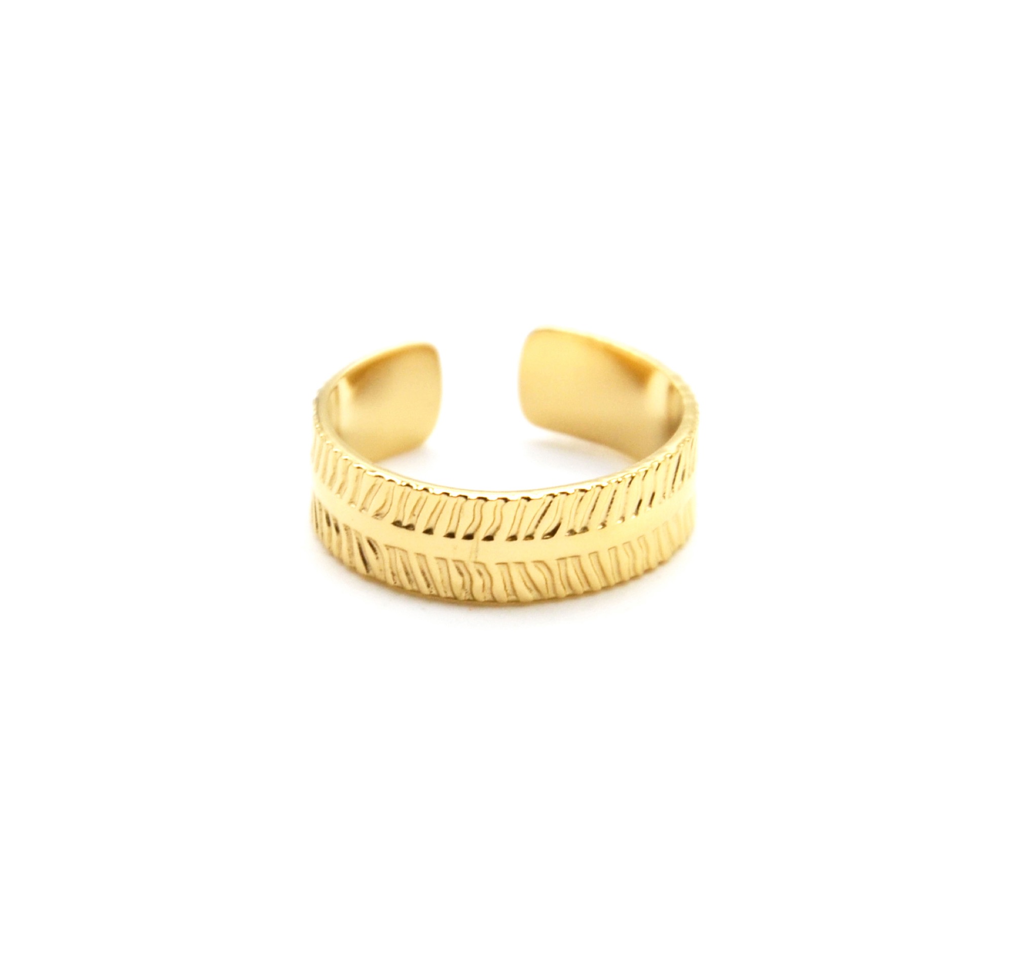BG731F – Bague Anneau avec Motif Relief Feuille Acier Doré