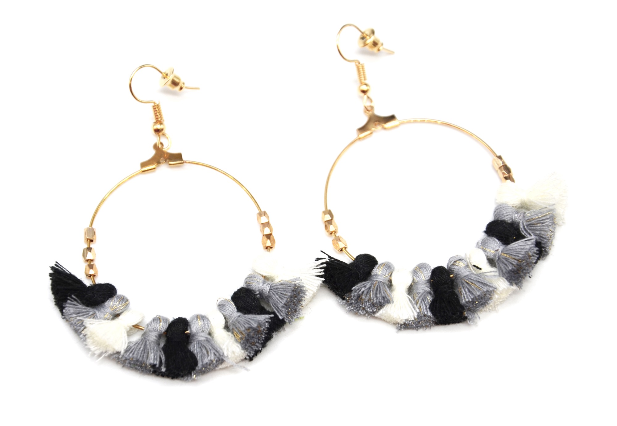 - Hauteur Totale : 5cm, Diamètre Créole : 4cm, Pompons : 1.4cm, Fermoir : Crochet