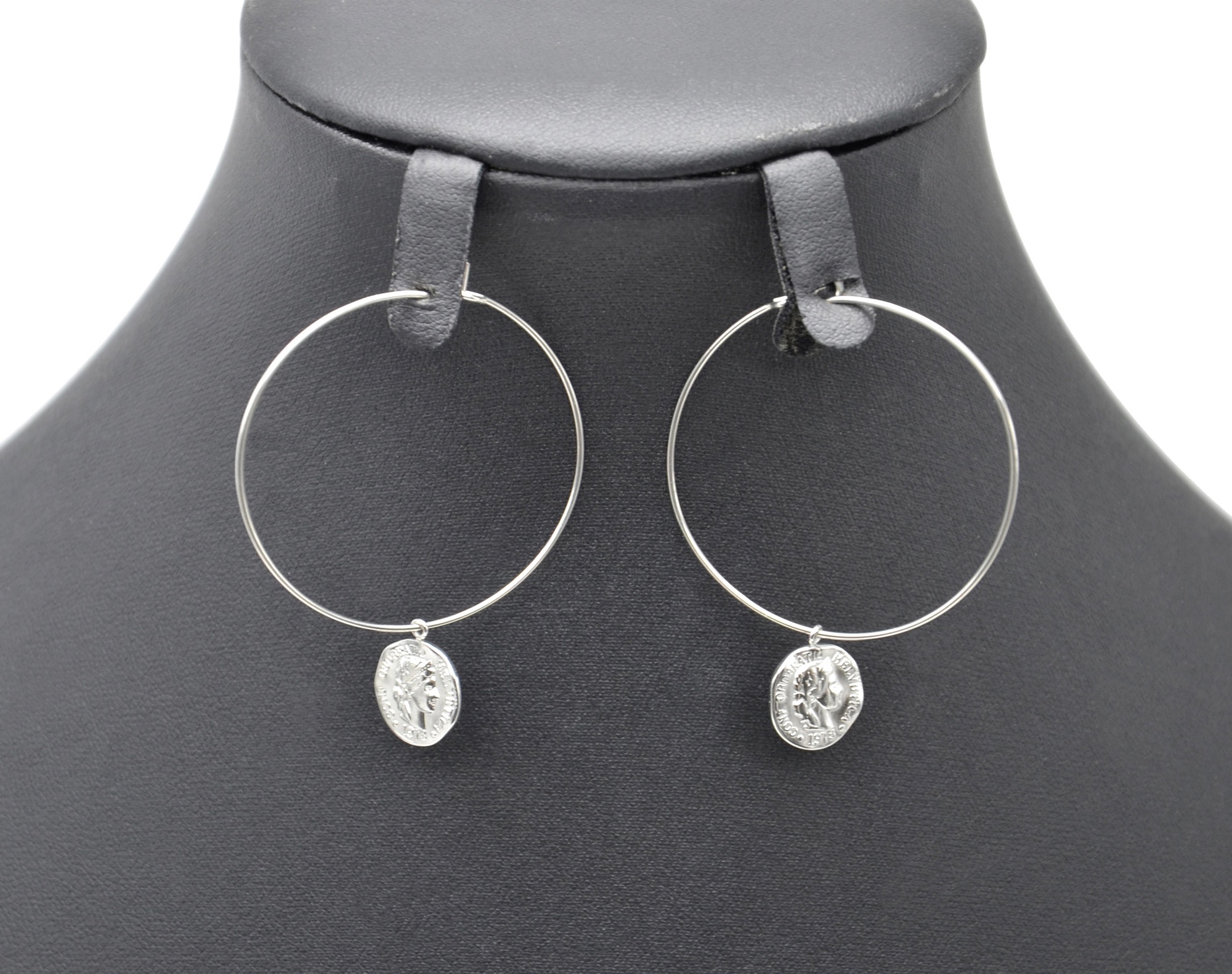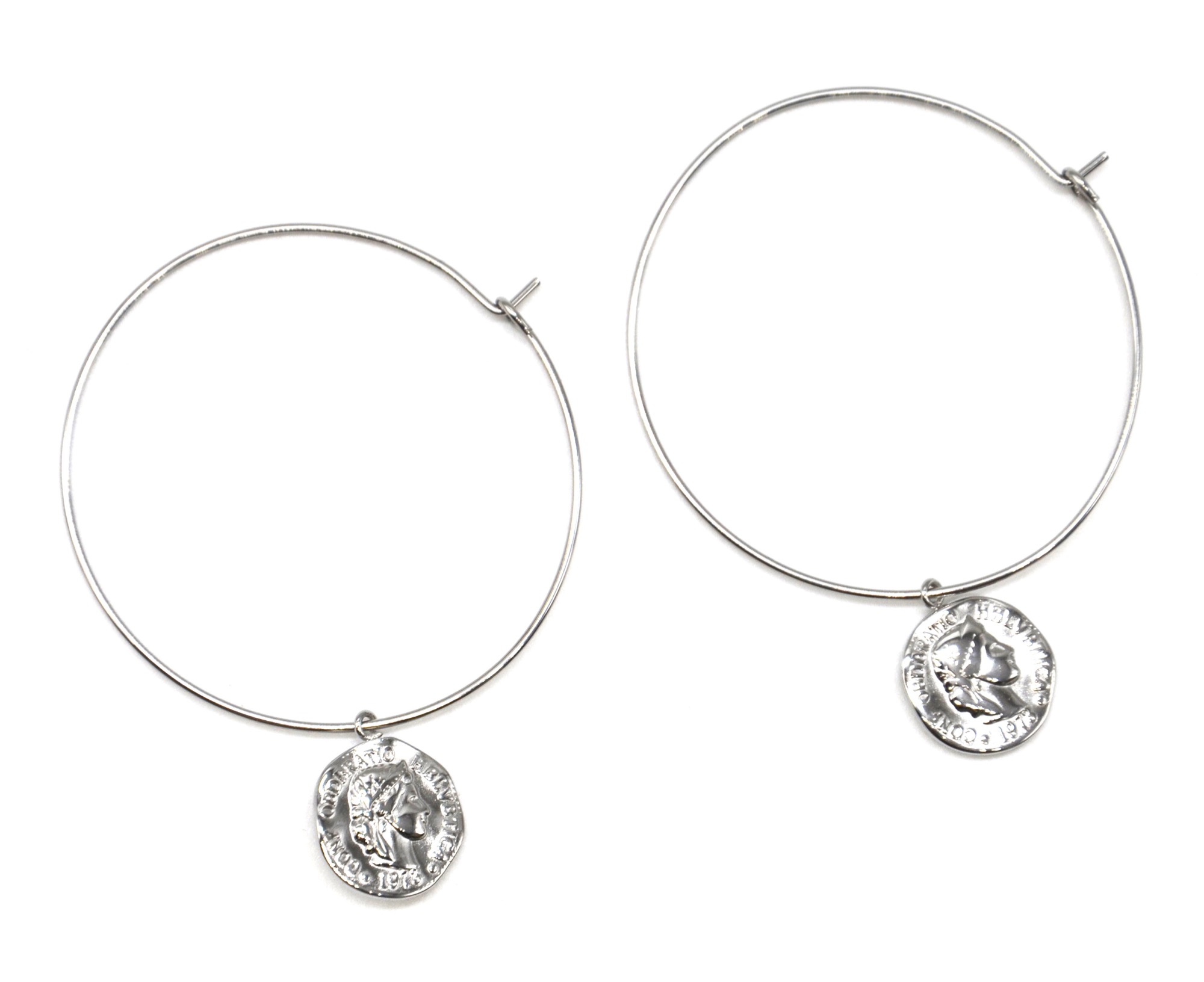 - Diamètre Créoles : 4cm, Diamètre Pièce : 1.2cm, Fermoir : Tige et Anneau