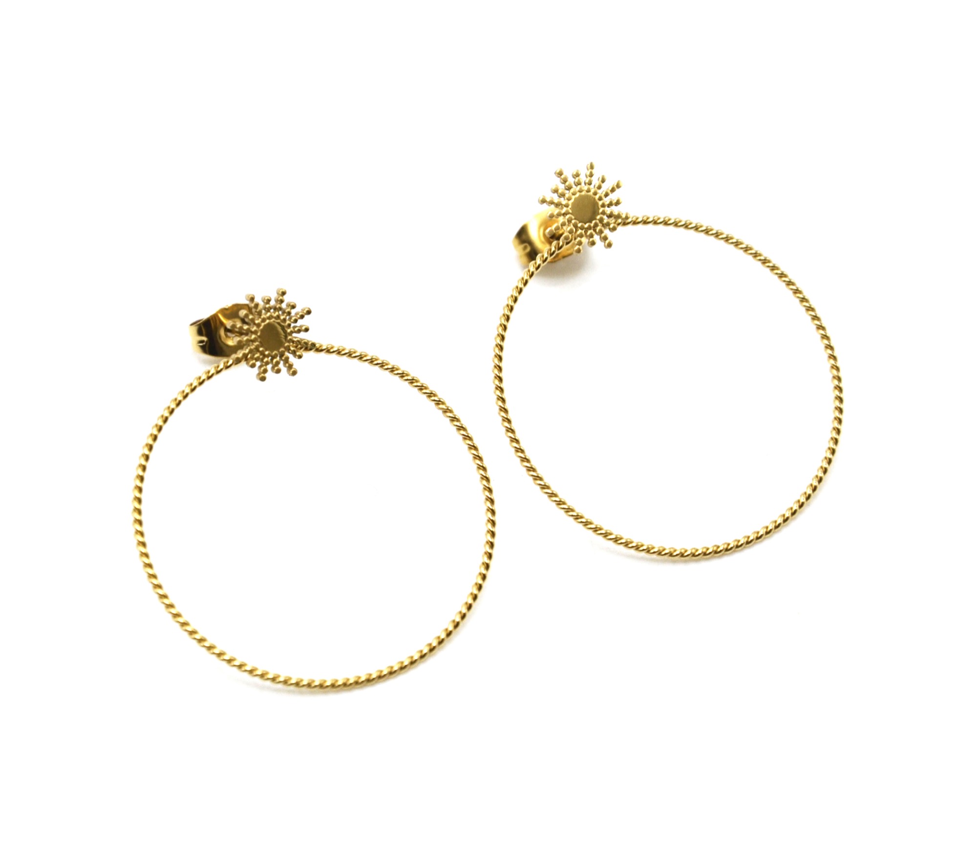 - Hauteur Totale : 3.5cm (dont Soleil : 0.8cm, Cercle : 2.9cm), Fermoir : Clou