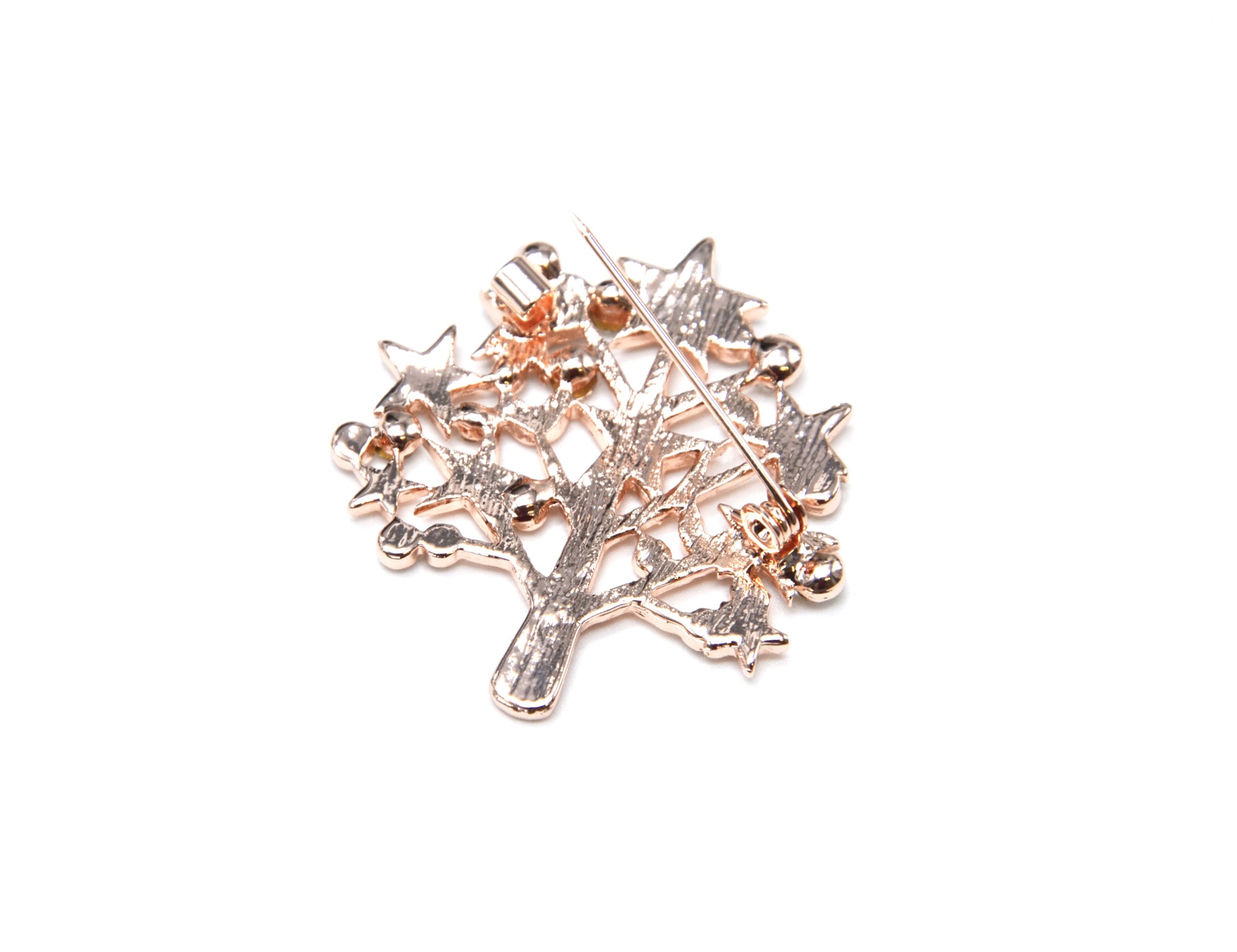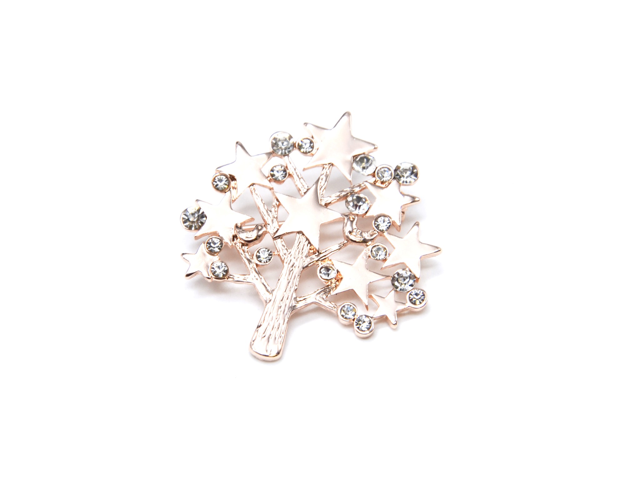BR287E – Broche Epingle Arbre avec Etoiles Métal Or Rose et Multi Strass