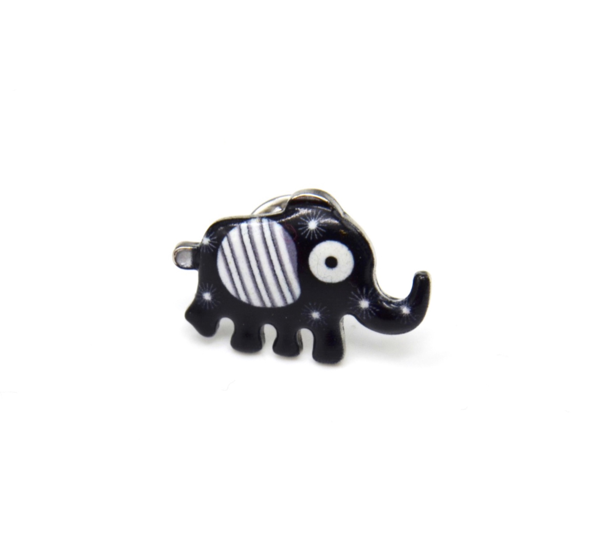 BR77E – Mini Broche Pin’s Eléphant Motif Rayures Noir et Métal Argenté