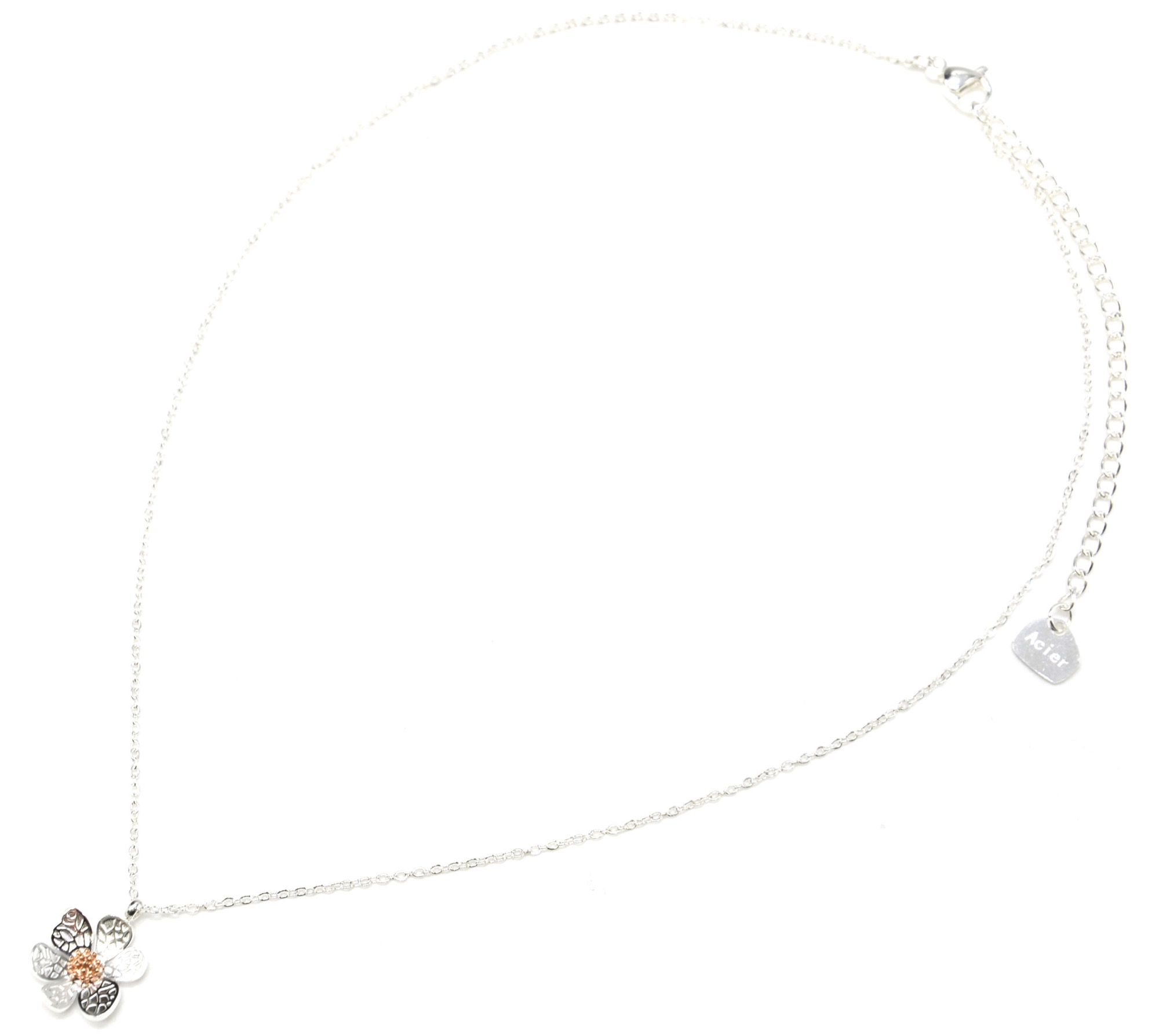 CC2036F – Collier Fine Chaîne Pendentif Fleur Pétales Motif Relief Acier Argenté / Or Rose