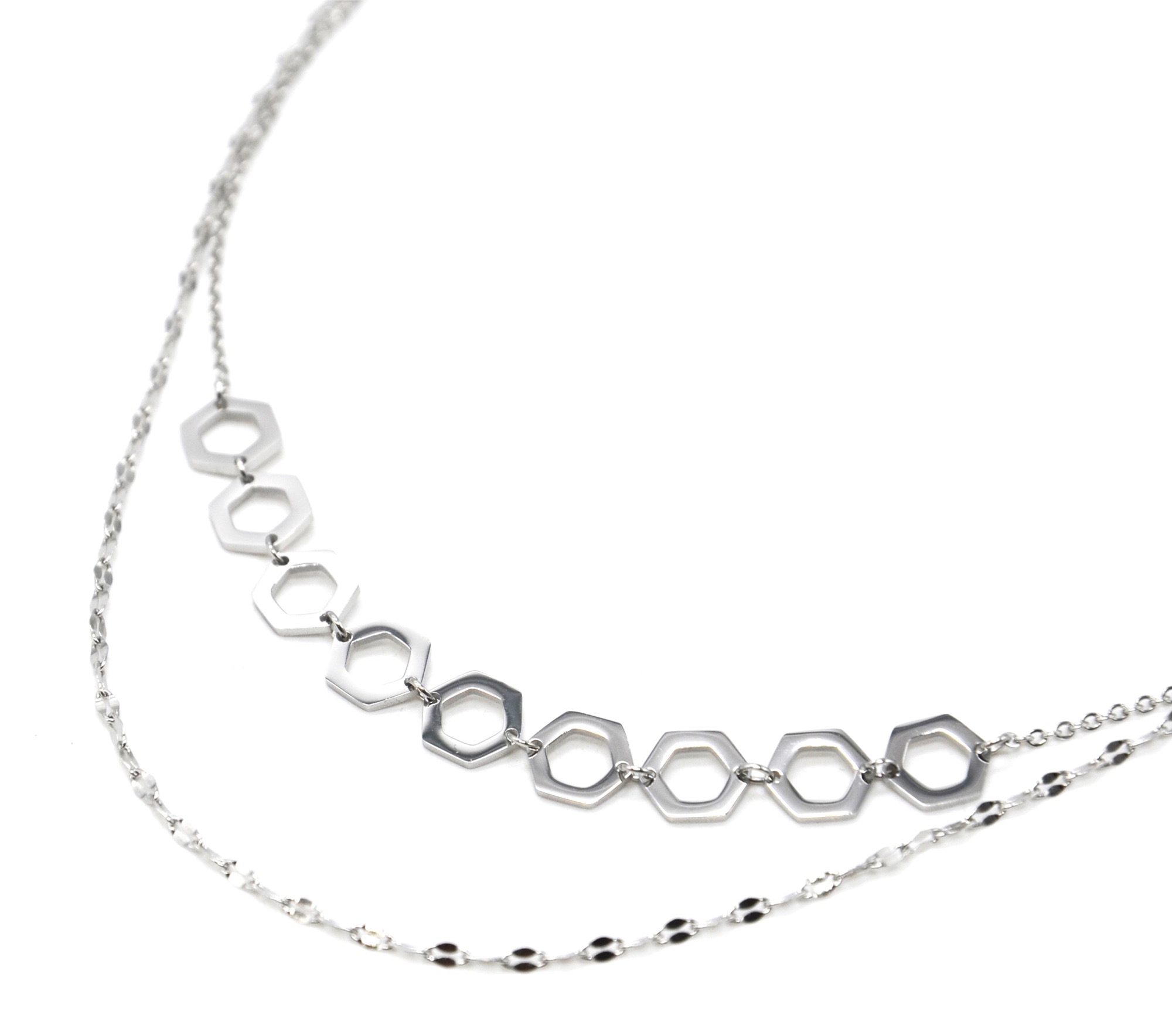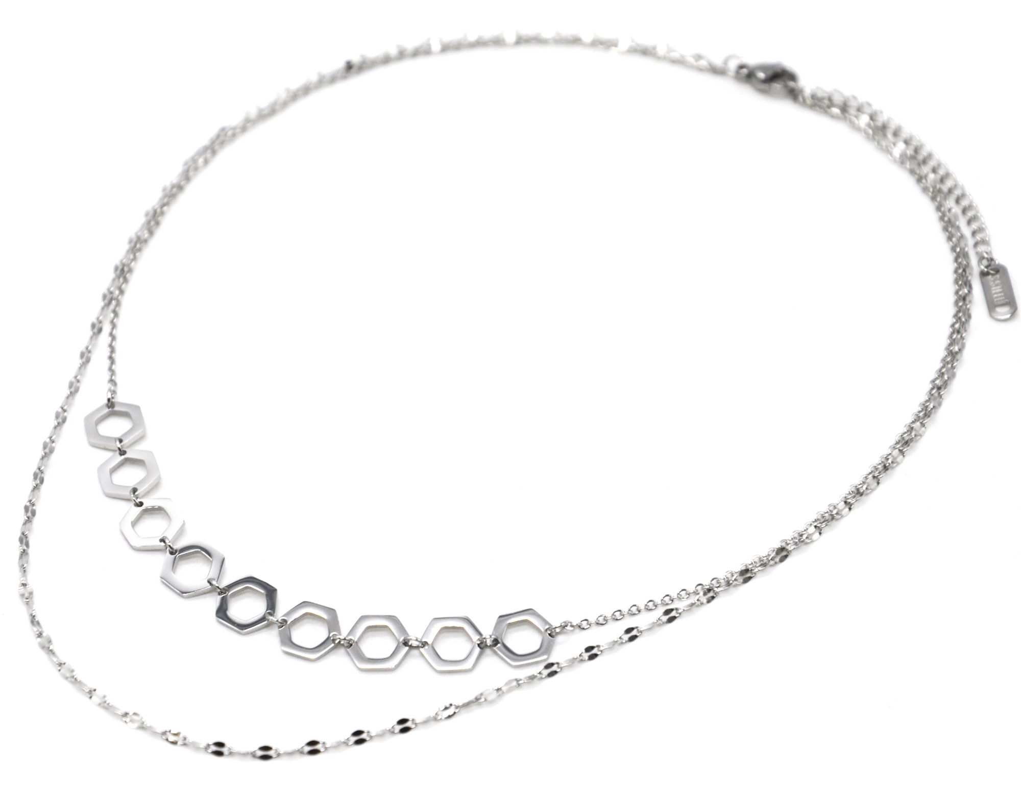 - Tour du Collier : 39-44cm (chaîne du haut), Hauteur Motif : 0.8cm