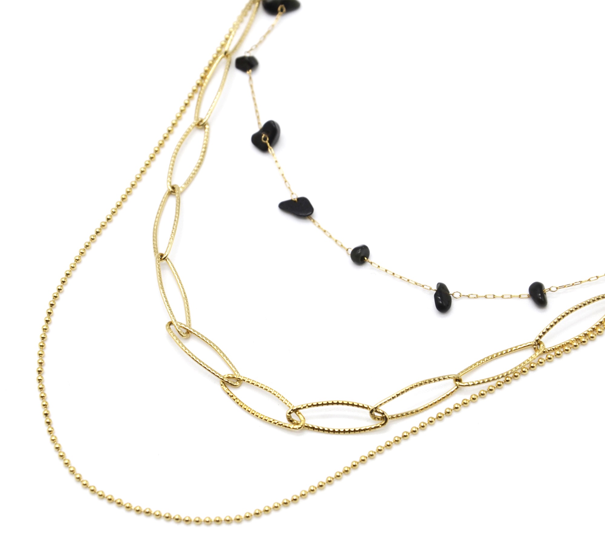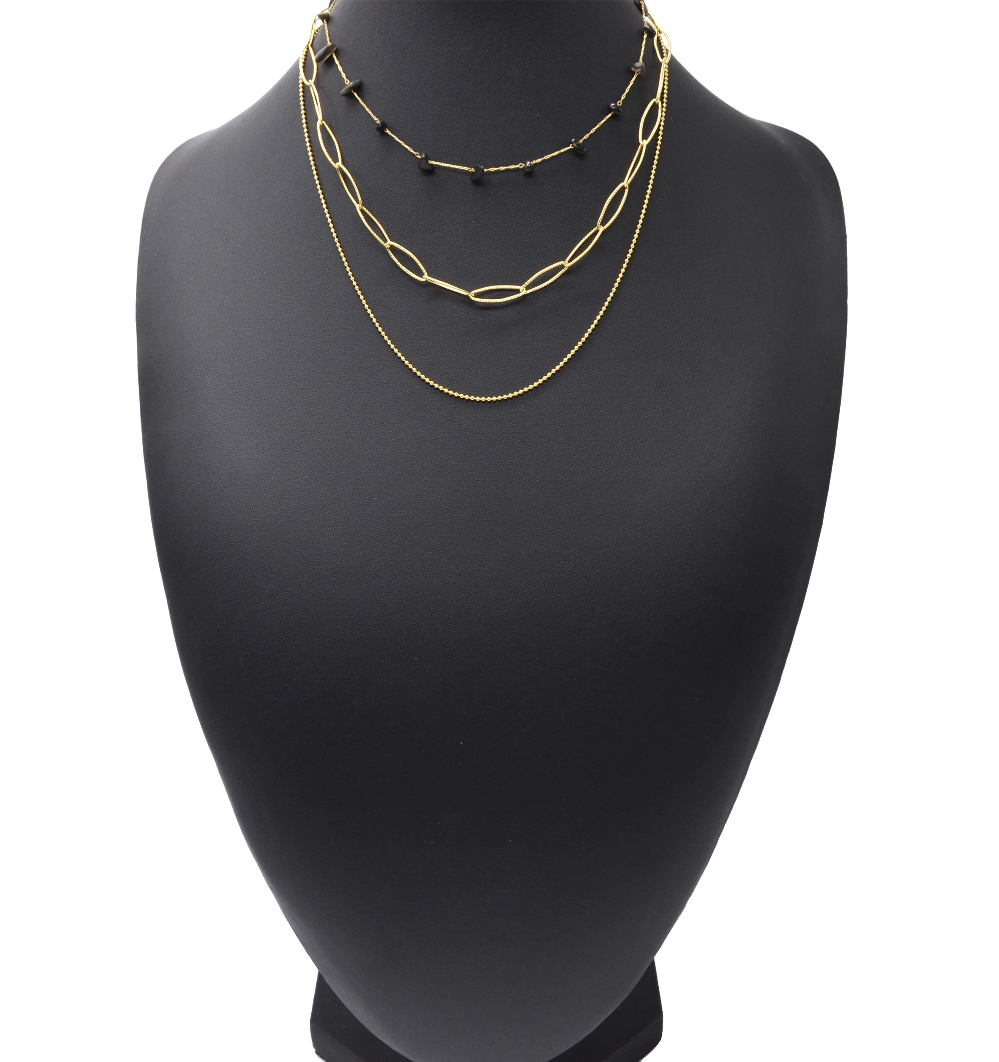 - Tour du Collier : 40.5-47.5cm, Largeur Maillons : 0.6cm, Billes : 0.1cm, Pierres : 0.5cm / 0.8cm