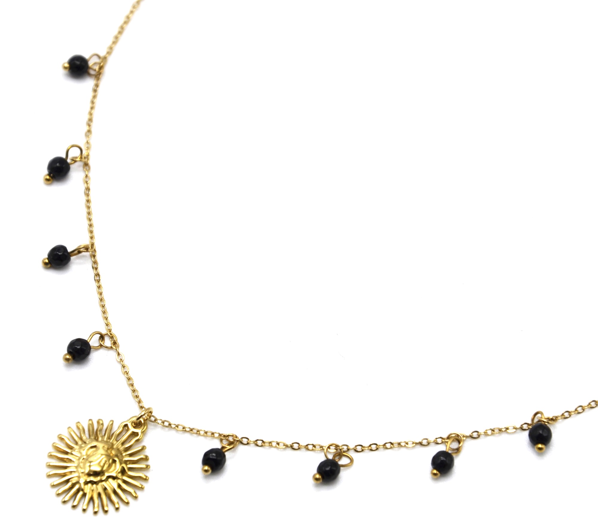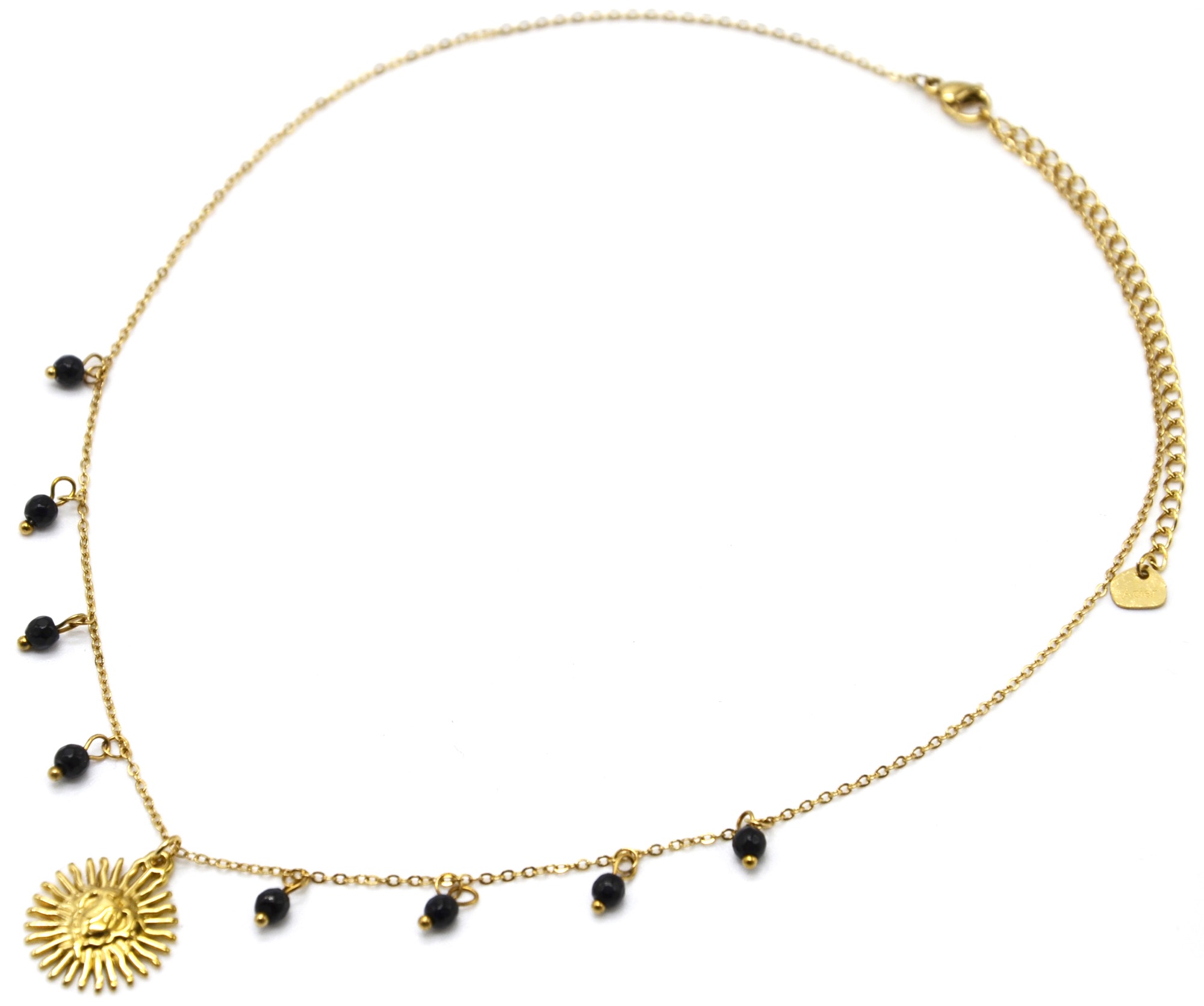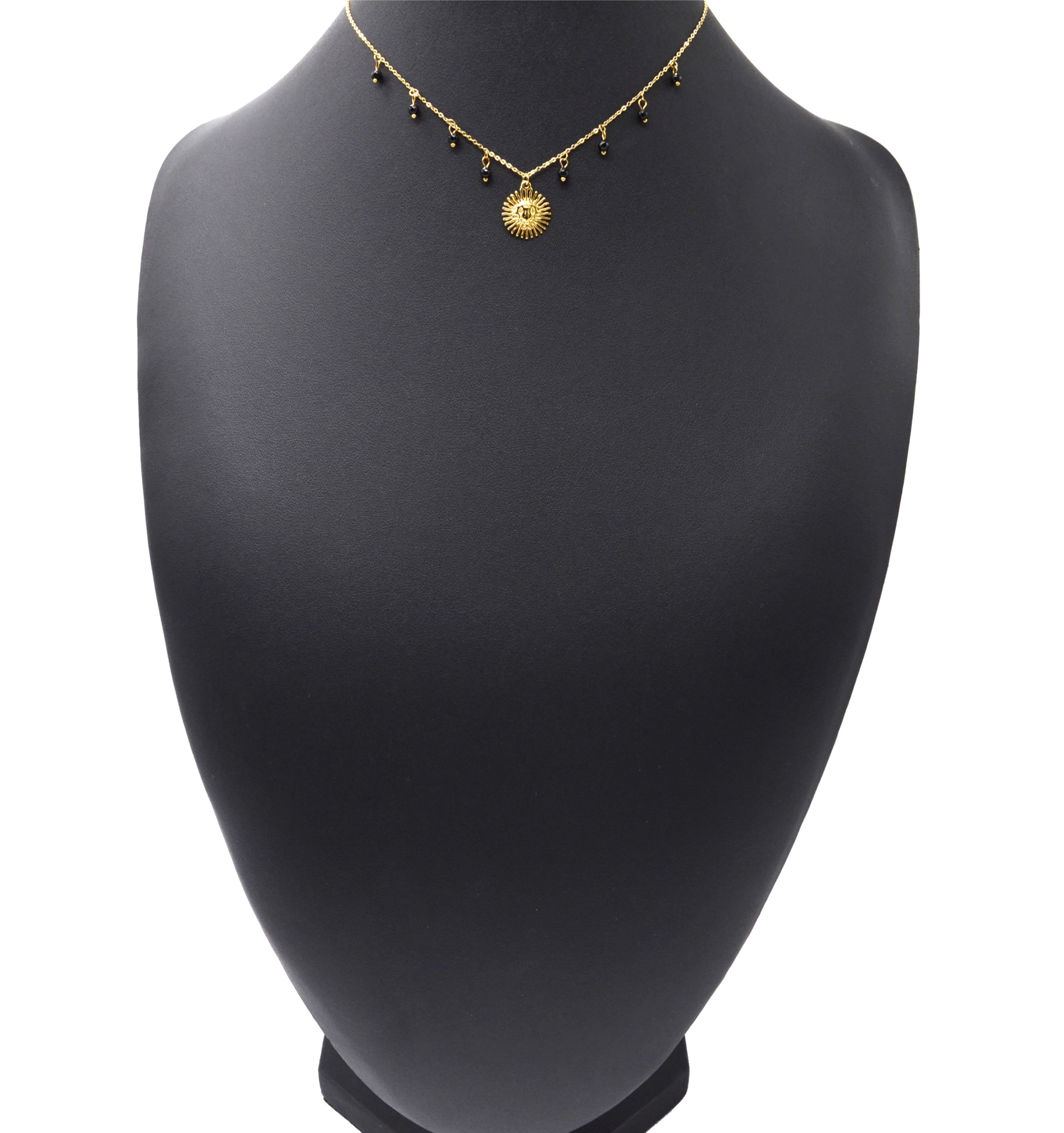 - Tour du Collier : 40-47cm, Diamètre Soleil : 1.5cm, Pierres : 0.3cm