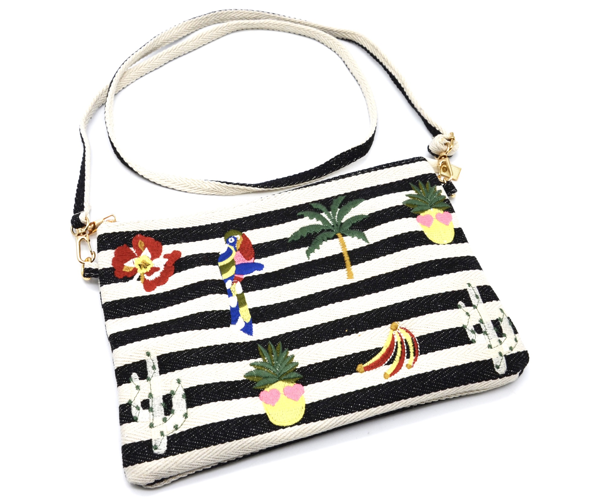 - Couleurs : Noir / Ecru / Multicolore / Doré, Se porte avec la poignée ou la chaîne bandoulière