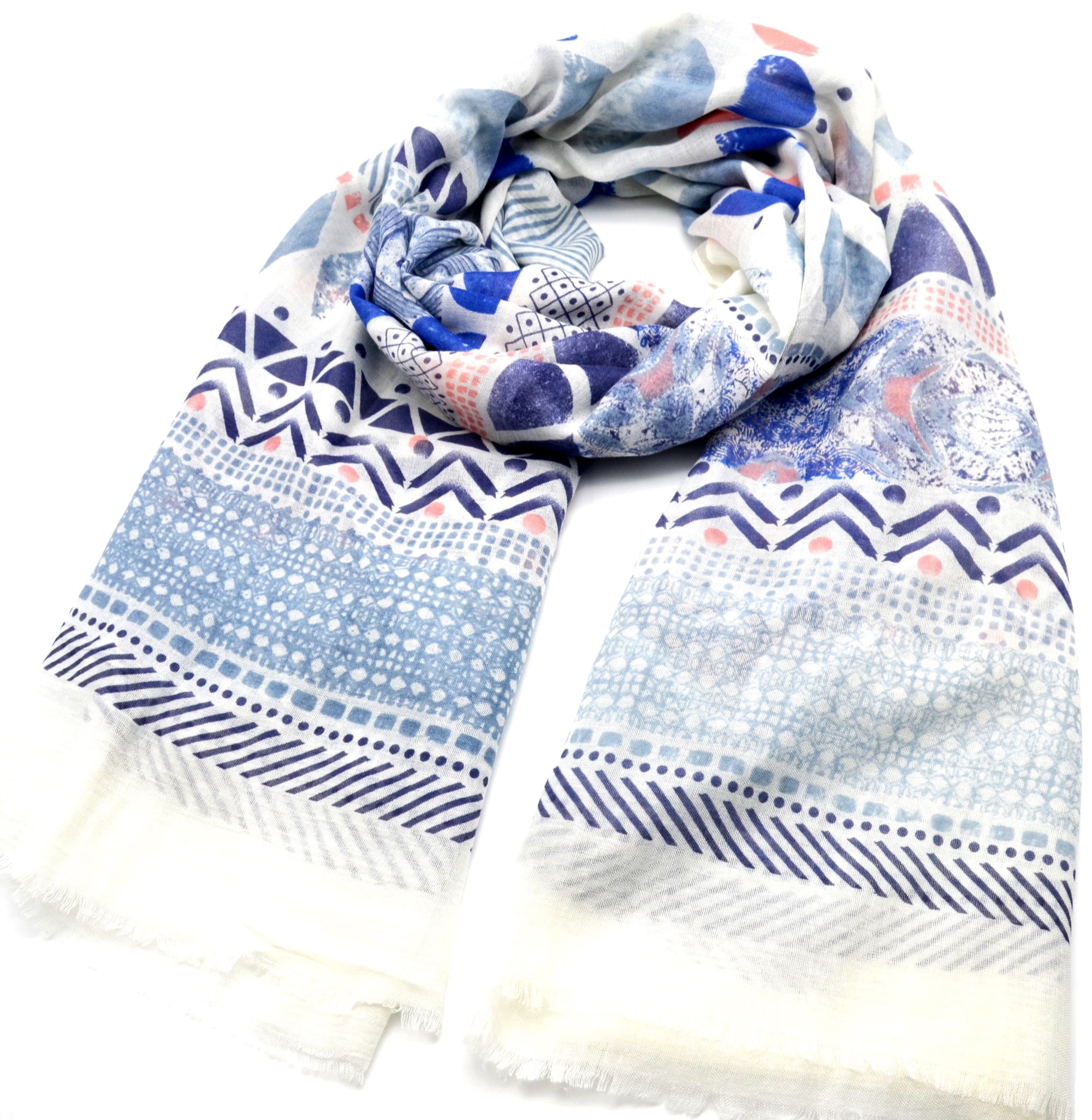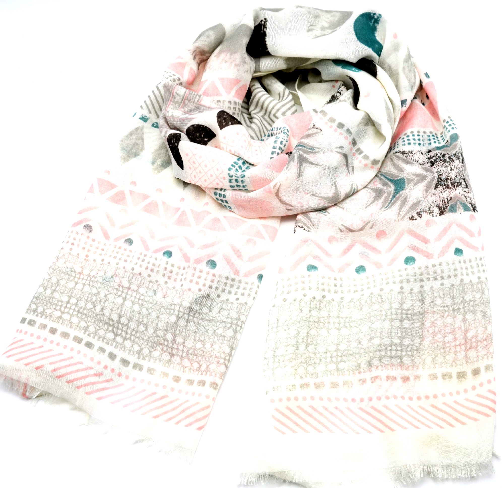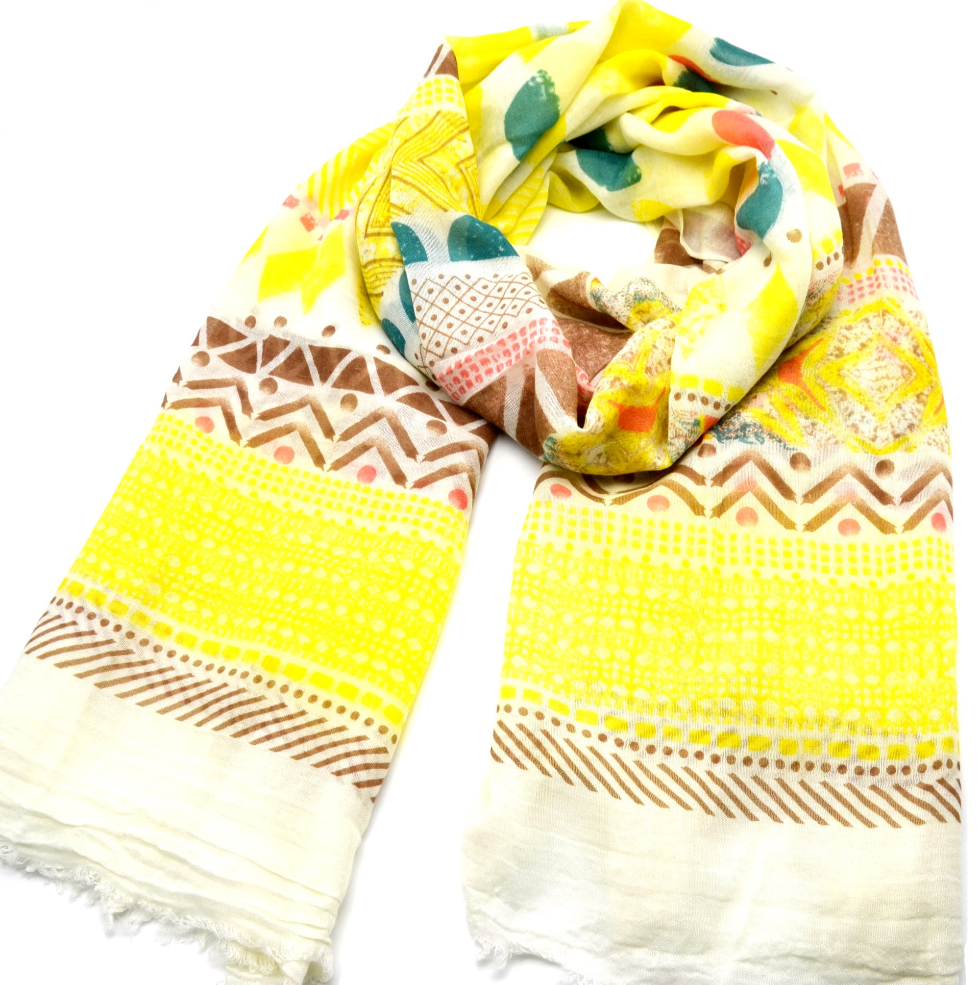 Foulard long avec assortiment de motifs ethnique et art style aquarelle mode pour femme qui sera l’accessoire parfait pour compléter votre tenue et y donner une touche tendance. Matières : 70% Viscose / 30% Coton. Dimensions : 180cm x 90cm. Article neuf et emballé, envoi rapide et soigné.