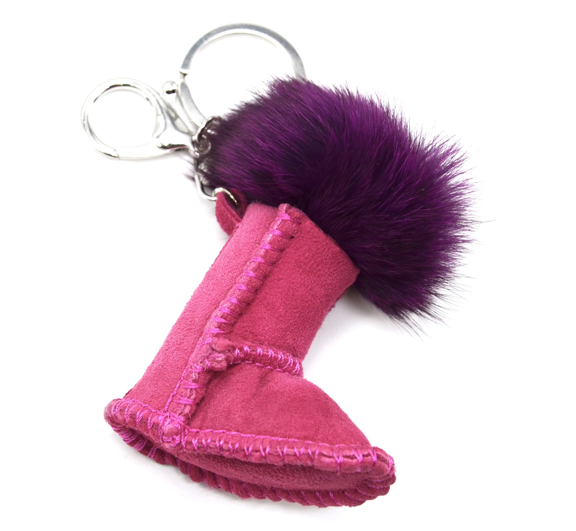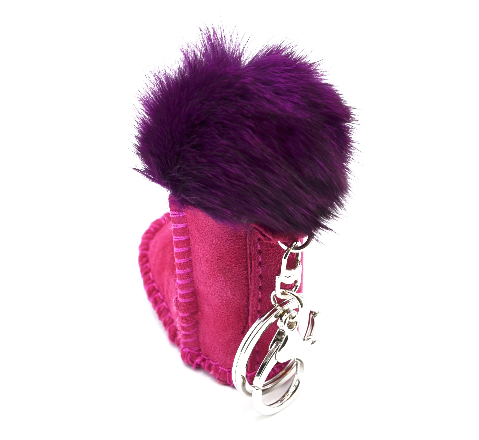 PT1779E – Porte-Clés / Bijou de Sac – Bottine Boot Effet Daim avec Pompon Violet