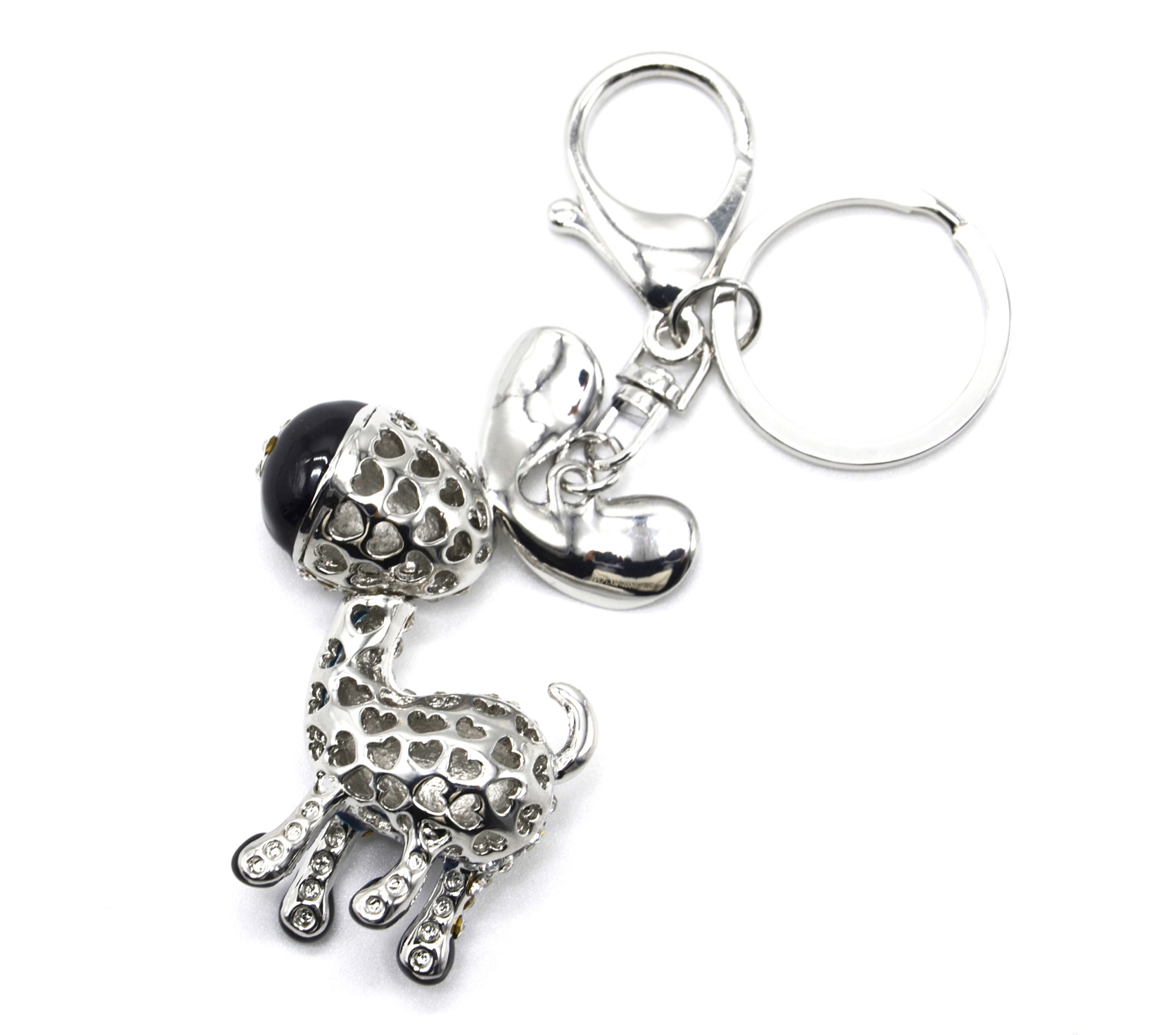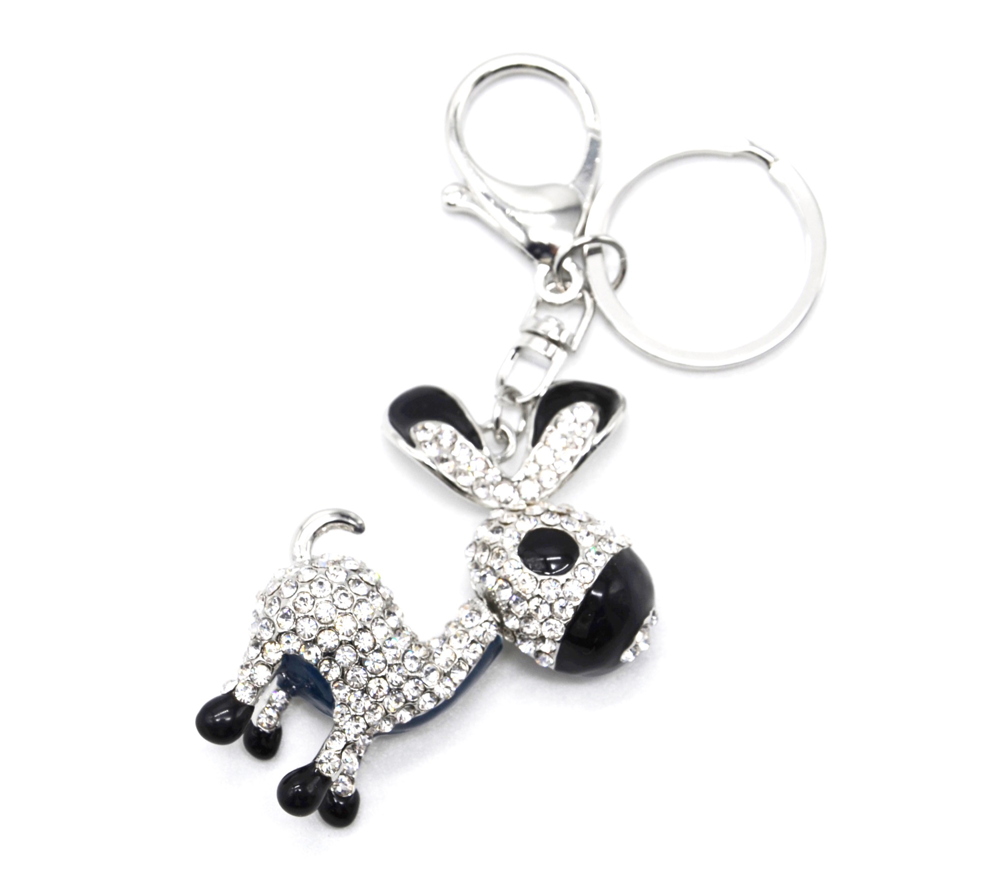 PT1830 – Porte-Clés / Bijou de Sac – Ane Métal Strass Argenté et Email Noir