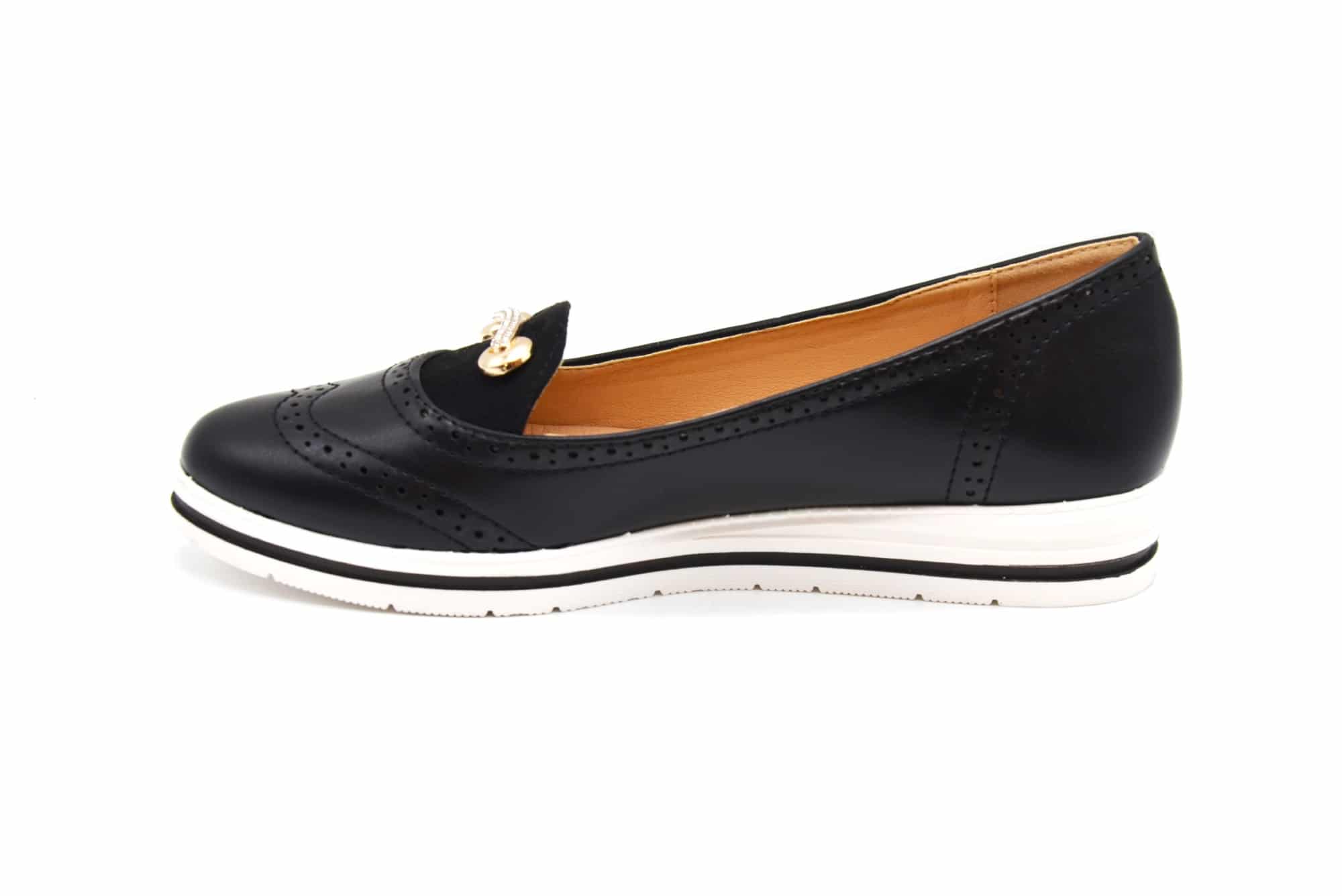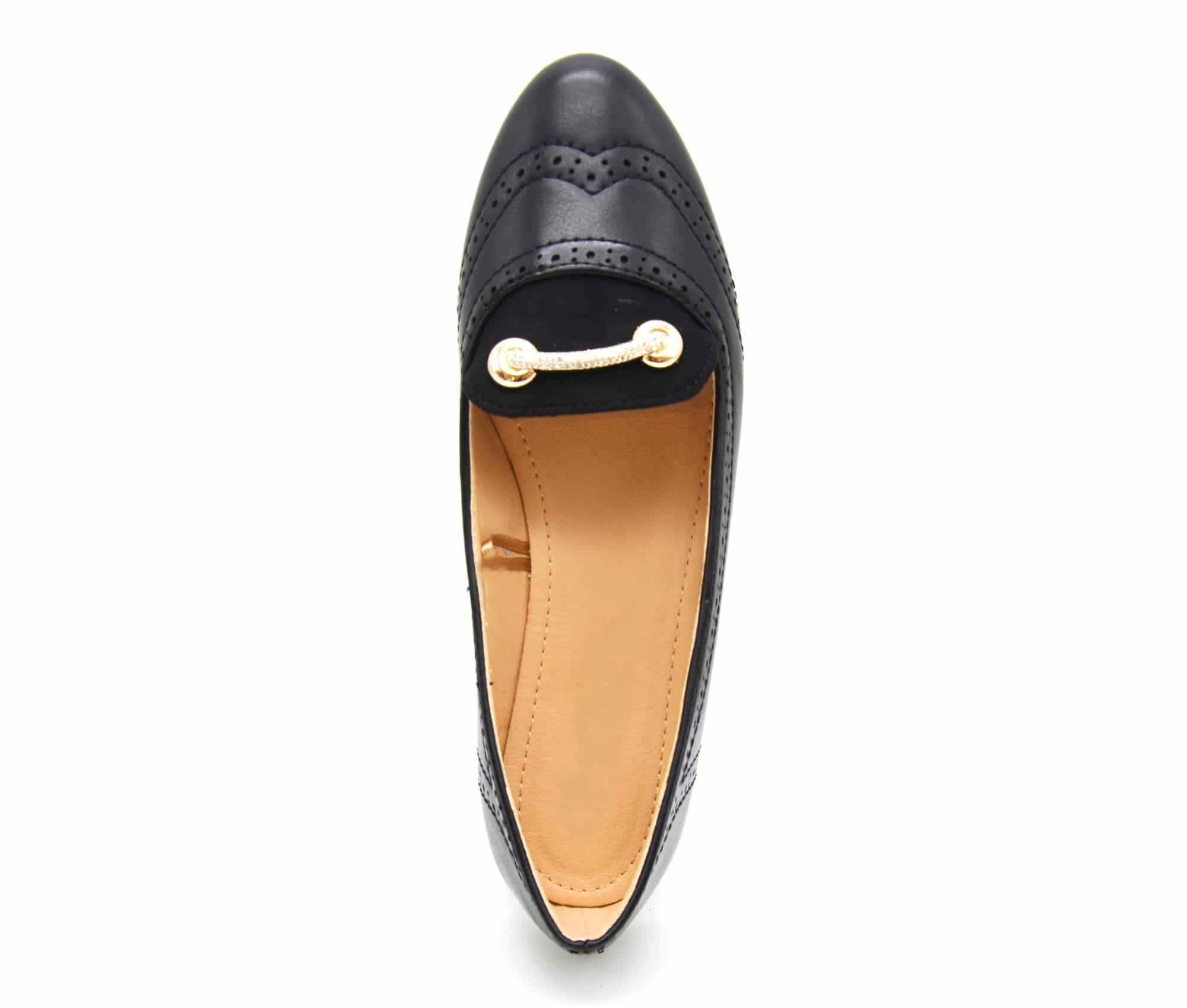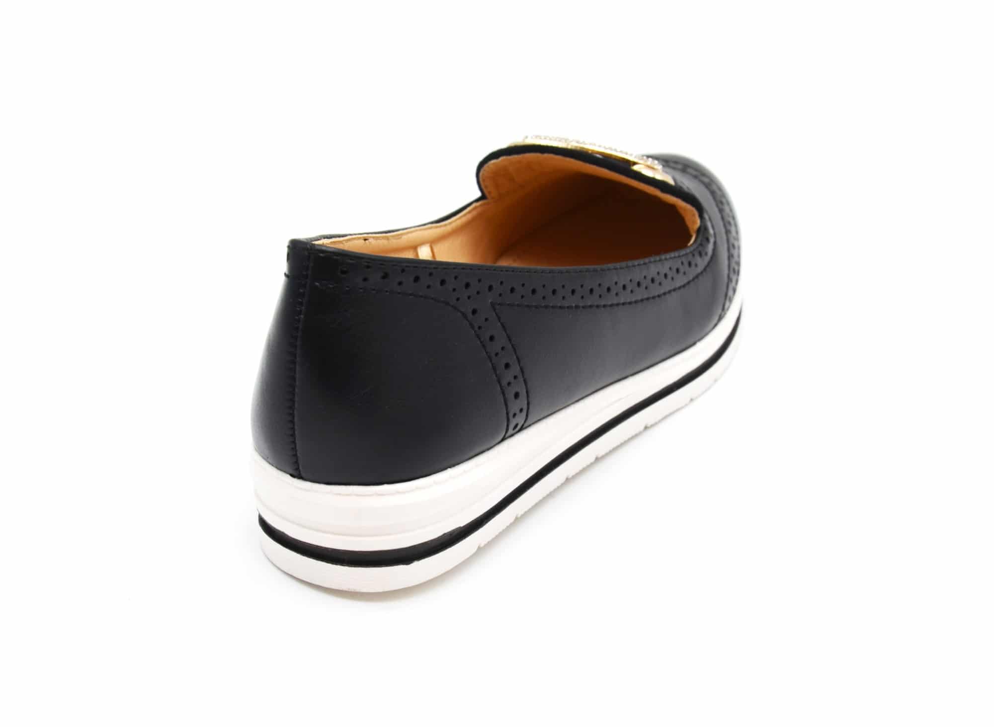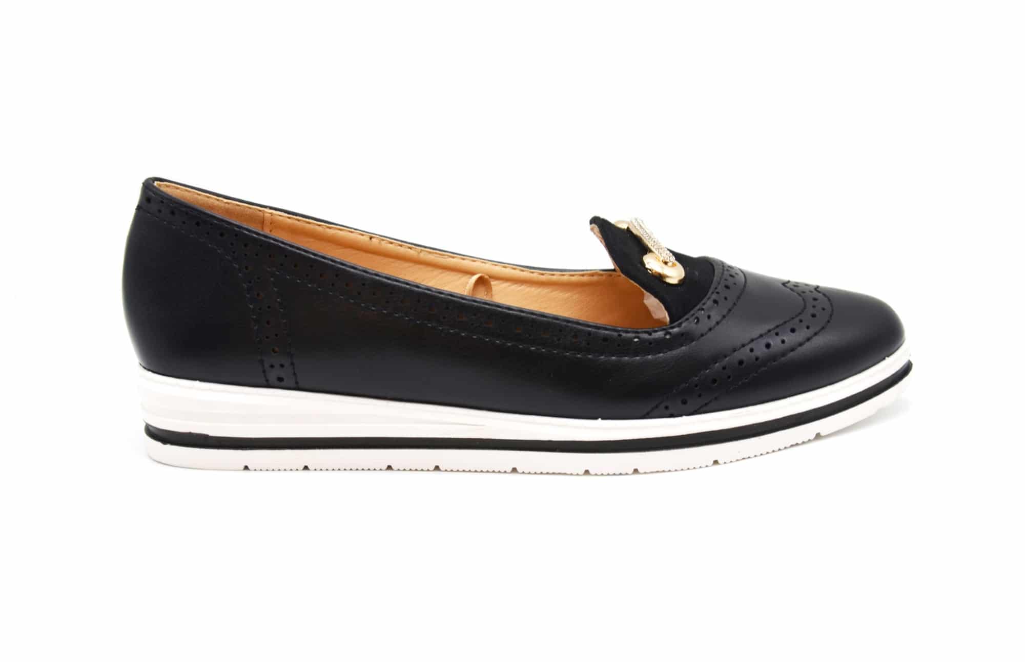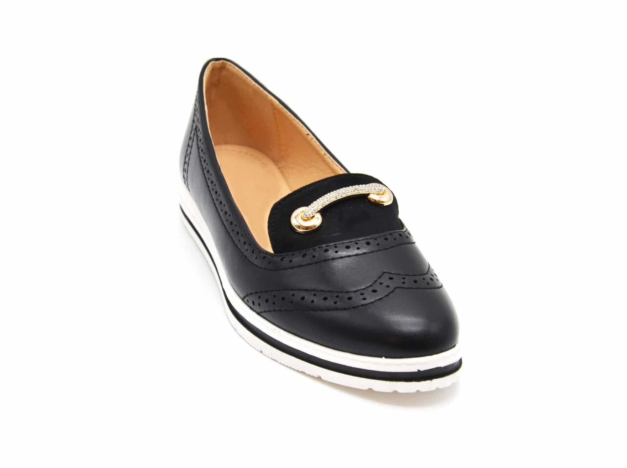 SHP103 * Mocassins Slippers Simili Cuir Perforé Noir avec Barre Strass